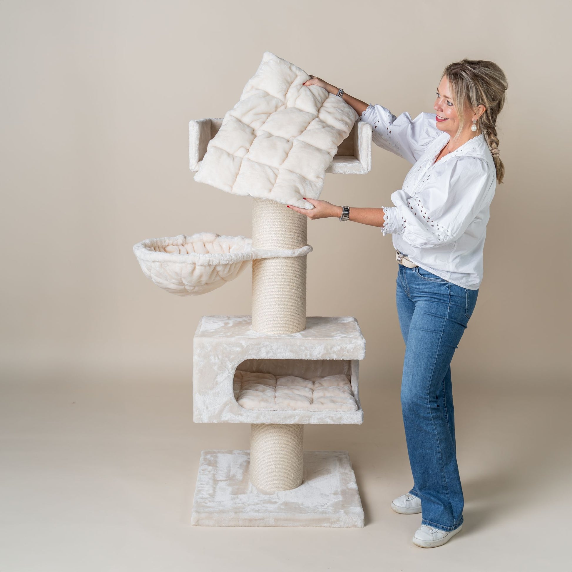 Discover the ultimate sanctuary for your Maine Coon or Ragdoll with the impressive Royalty Retreat! Specially designed with all the features your beloved cat needs to entertain and relax, this scratching post provides space for up to 3 to 4 large (purebred) cats.