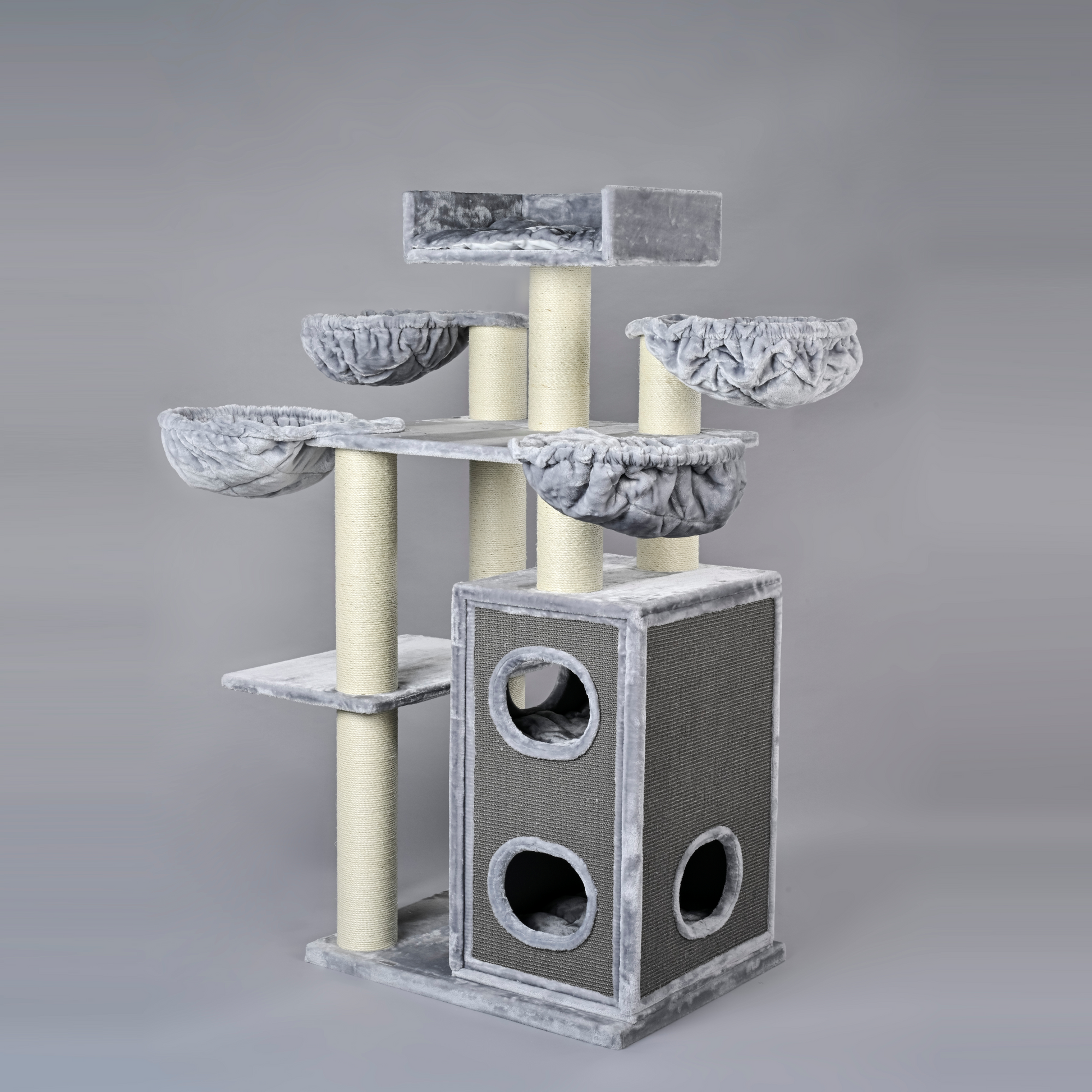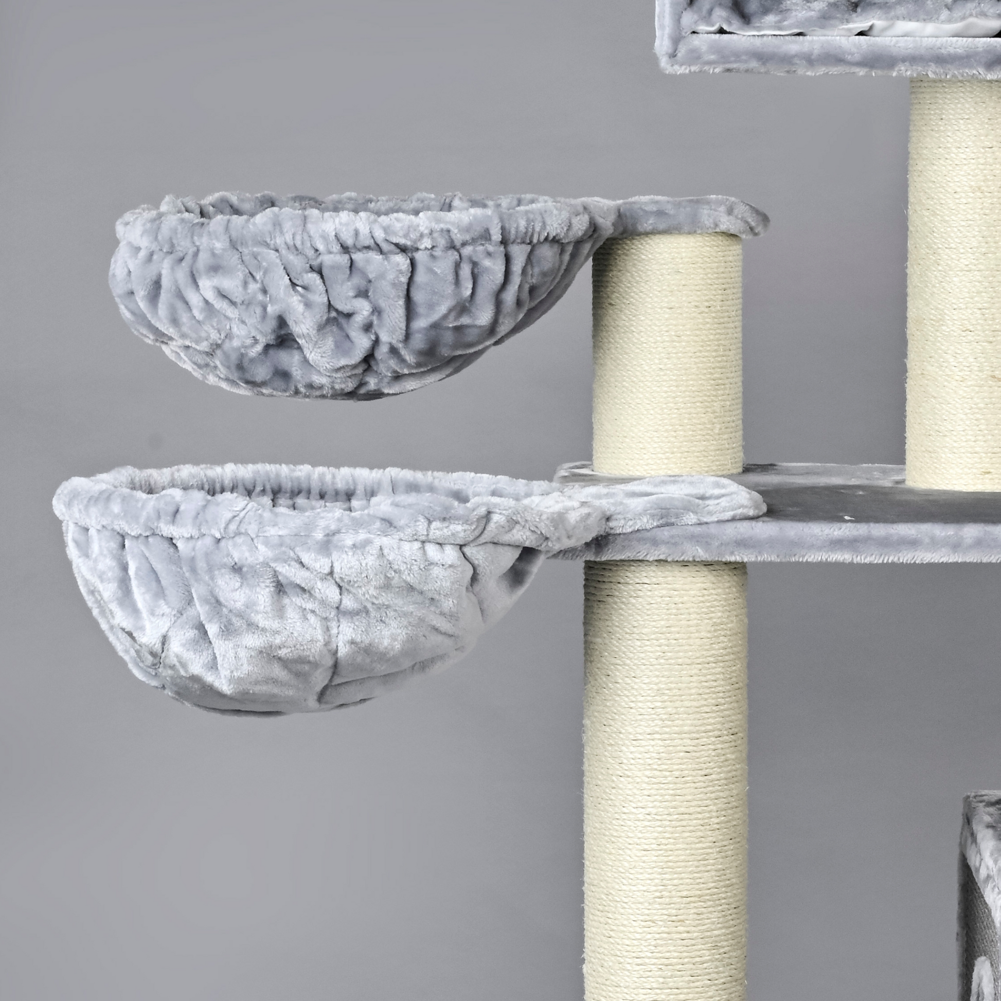 All platforms are fully upholstered in deliciously thick and soft 600-gram plush, making each platform a wonderful place for your cat to play, relax or sleep. This nearly 1.85 metre-tall cat tree is an amazing place for your cats to survey their domain from on high.