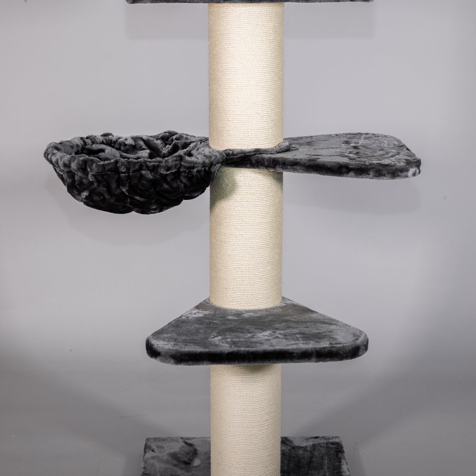 With its 20 cm thick sisal posts and mega beds, the Royal Royalty Dark Grey scratching post has been one of RHR Pets' most popular scratching posts for years. This is because of its many scratching options and lying places, super large cat Lounge of 60 cm wide and luxurious look!