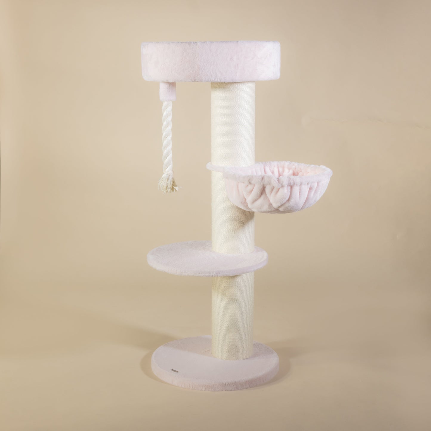 The Maine Coon Sleeper de Luxe Pink, with its 20 cm thick sisal poles, de Luxe 45 cm hammock and large lying area, is a must-have cat tree for any large cat. The large, 60 cm round seat provides even the largest cat breeds with a place to enjoy. Your cat can keep an eye on its domain from the seat, which is about 1.5 metres high. This cat tree is completed by a rope made of natural sisal.