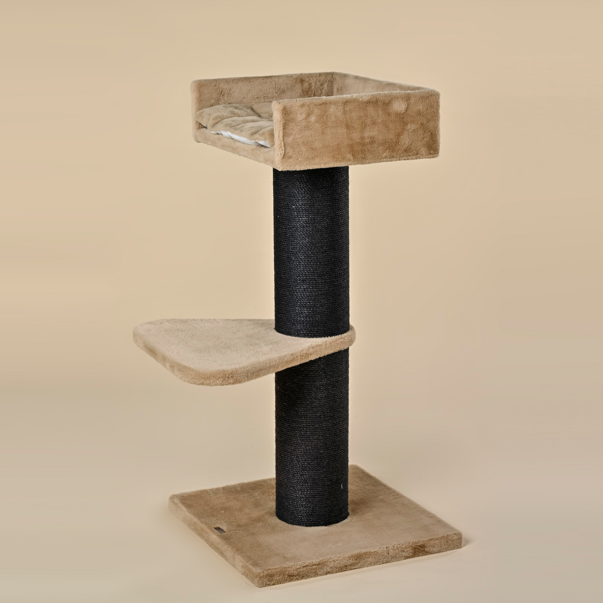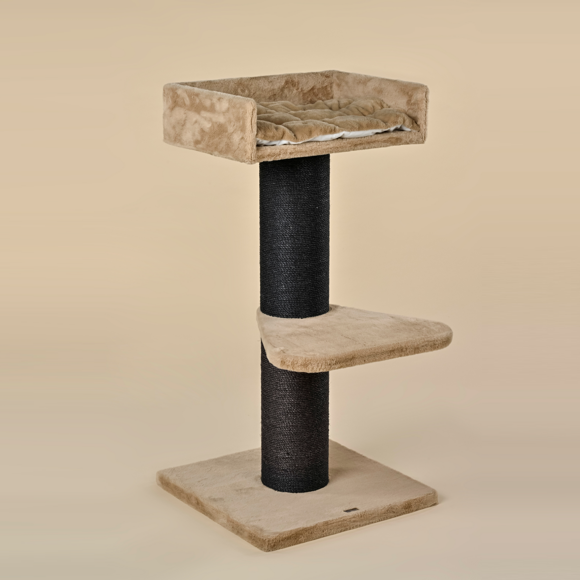 The beige Maine Coon Lounge cat tree, with its 1.2-metre height and 20 cm thick sisal poles, is one of RHR Pets' strongest and sturdiest scratching poles and, therefore, suitable for large and heavy cats. This modern cat tree has an exceptionally large lying area of 60 cm by 43 cm on the top, on which your cats can stretch out completely. Very easy to place and also very stable due to its compact design.