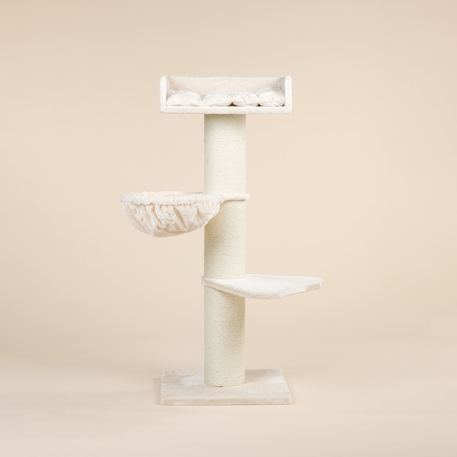 The Royal Cat Tree Royalty de Luxe cream, with its 20 cm thick sisal poles, large de Luxe hammock and large lying areas, has been one of the most popular cat trees from RHR Pets for years. This is because of the many scratching possibilities, lying areas, the super large cat Lounge measuring 60 cm wide and its luxurious appearance!
